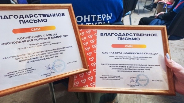 Награждение началось с небольшой презентации, посвященной добровольчеству и недавним событиям, ставших во главу угла небольшой республики − открытии муниципальных волонтерских центров. О деталях средства массовой информации сообщали исправно, объясняя, чем будут полезны такие учреждения, какие направления будут развиваться, сколько ребят будут заниматься полезной деятельностью. Поэтому когда первыми для награждения ведущие торжественного награждения назвали издания «Марийская правда» и «Молодежная жизнь в Марий Эл», испытала особую гордость за редакционный коллектив, подготавливающий материалы для того, чтобы верный читатель всегда был в курсе дел волонтеров Марий Эл.