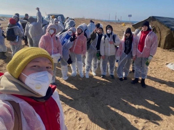 В первый же день волонтеры из Марий Эл прошли «боевое крещение» на Бугазской косе, где очищали пляж от мазута.