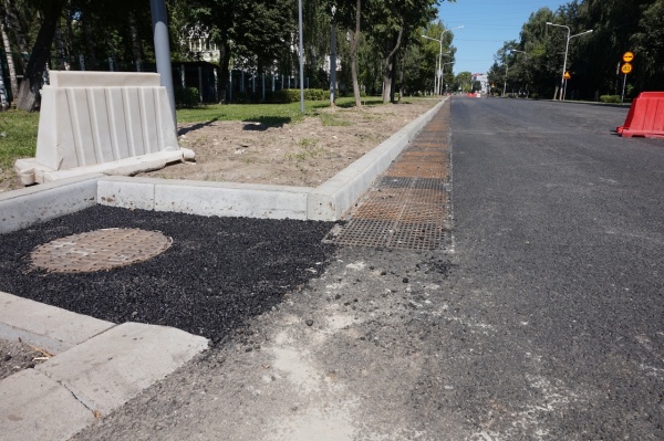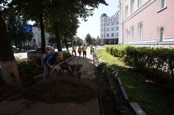 Там дорожные работники АО "Марий Эл Дорстрой" меняют бордюрные камни и обновляют покрытие пешеходной зоны. Стоит отметить, что на участке проезжей части ул.Комсомольской устроены лотки ливневой канализации.