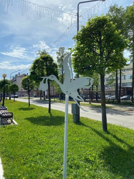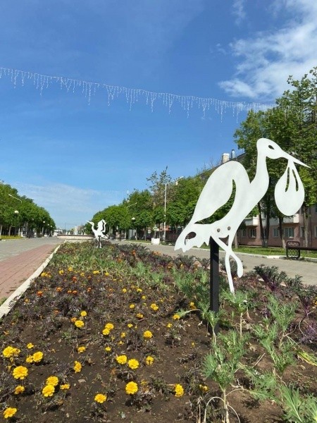 Композиции птиц находятся напротив Перинатального центра. Специалисты МУП «Город» объяснили выбор необычного оформления общественного пространства. Так, за основу идеи было взято выражение о том, что малышей приносят аисты.