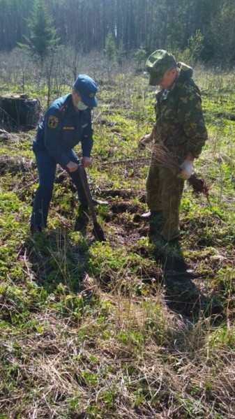 Но не только профилактической работой занимались специалисты госпожнадзора. Заместитель начальника отдела Василий Бахтин и старший дознаватель отдела Тахир Сафин вместе с представителями параньгинского лесничества высадили молодые березки на смену деревьям, которые были уничтожены огнем во время лесных пожаров или просто погибли по другим причинам.