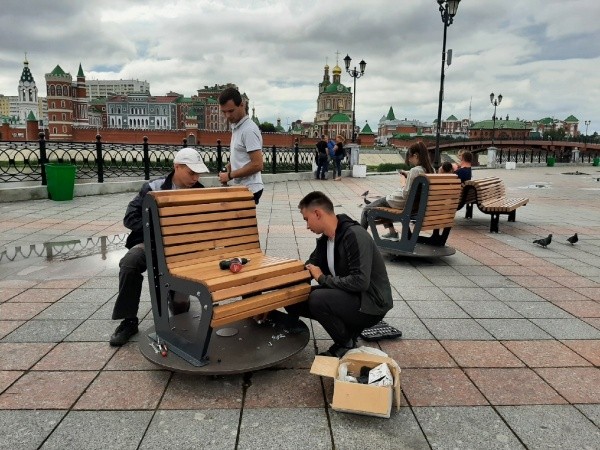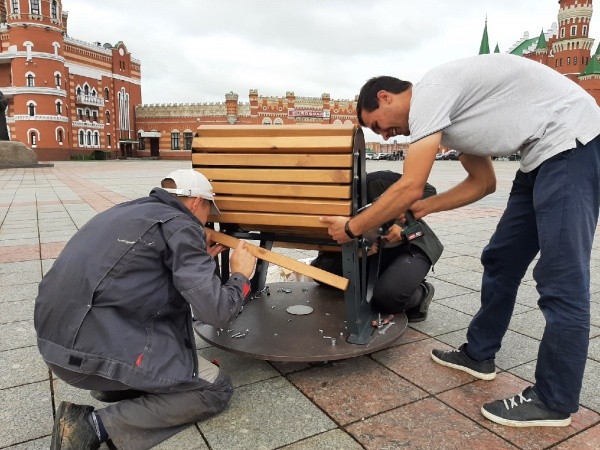 Специалисты даже не успели выполнить все предусмотренные контрактом работы, а им уже приходится ремонтировать новую городскую мебель. Сейчас подрядчик принимает антивандальные меры и заменяет существующий крепёж вращающихся кресел на усиленный вариант.