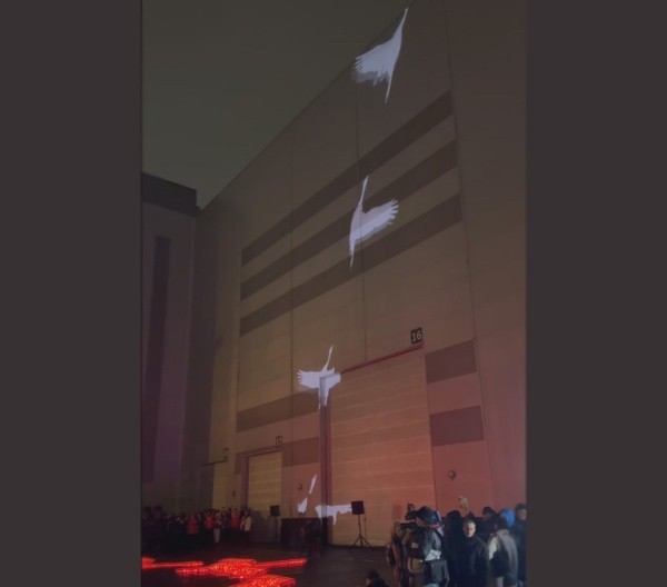 Сегодня, в день общенационального траура, в 19:55 в Москве почтили память погибших. Волонтерское движение «Мы вместе» организовало акцию – на концертном комплексе появилась проекция журавлей, которые поднимаются и улетают в небо.