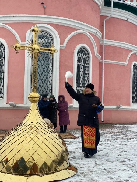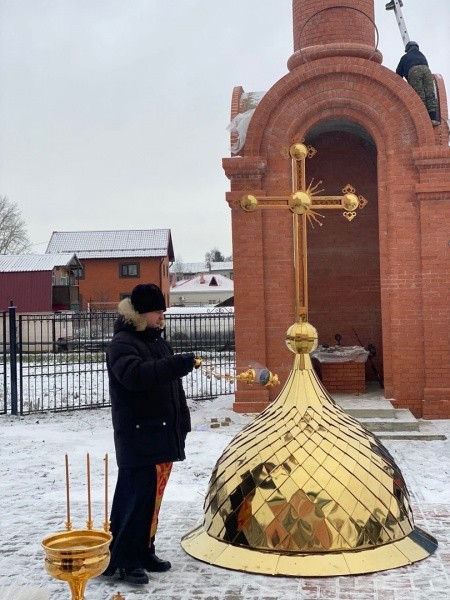 Часовню строили, в том числе, на пожертвования. Осенью 2021 года кирпичная кладка была готова. А вчера, 7 декабря, над часовней установили купол-луковицу с крестом, изготовленный в Чувашии. Когда наступит весна, начнется работа по установке окон и дверей, прихожане займутся внутренней и внешней отделкой. А полностью завершить строительство планируется к 4 августа 2022 года – дню