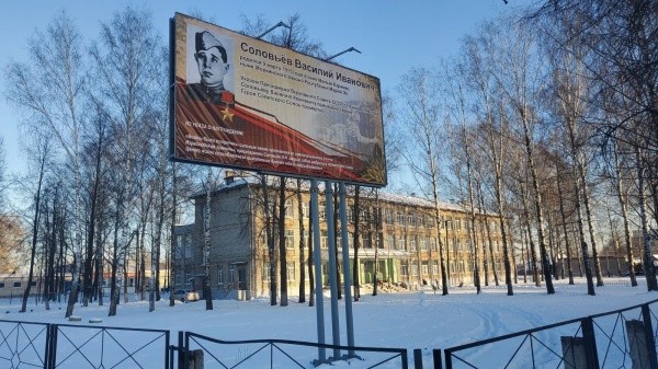 О подвиге героя не только рассказывают на уроках истории и краеведения. Информация о нем расположена в вестибюле школы, на стенде кадет школы. Как отметили в паблике ВК «Школа №3 г. Йошкар-Олы», билборд с портретом Василия Соловьева установлен в рамках всероссийского проекта «Лица героев».