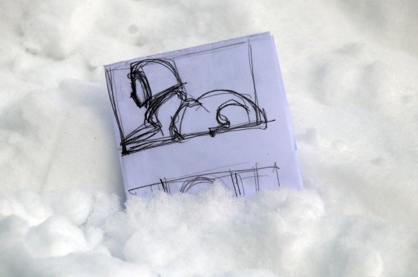 Осужденные подготовили снег для работы. Было решено сделать сфинкса.