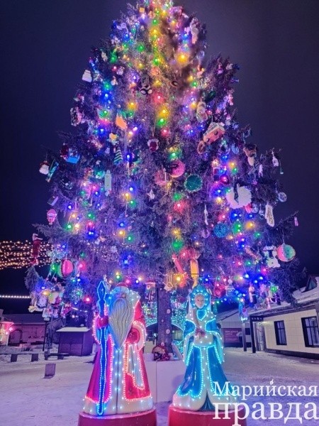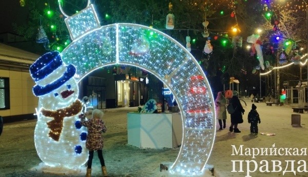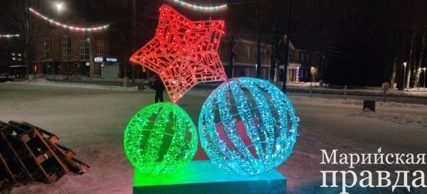 В преддверии праздника яркими огнями засверкал административный центр Медведевского района Марий Эл.