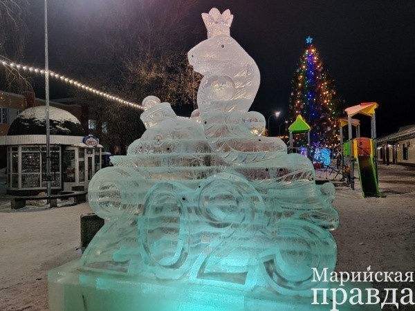 Но главная фигура, конечно, это ледяная змея выше человеческого роста – символ следующего года. На неё уже начали прилеплять монетки на удачу. Змею изготовили скульпторы из Чебоксар, уточняет администрация Медведевского района.