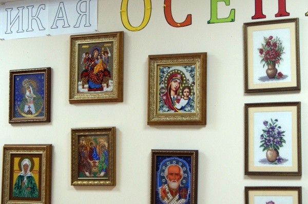 Выставка называется «Многоликая осень». Это два десятка различных картин, выполненные в технике алмазной мозаики, и вышитые.