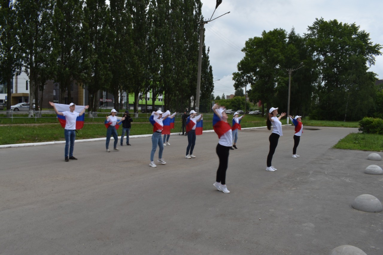 Под известную патриотическую песню в исполнении детского ансамбля «Непоседы» на площадке перед Дворцом молодежи участники акции танцевали, поднимали флажки, привлекая тем самым внимание прохожих и проезжавших мимо автомобилей, которые приветствовали ребят сигналами своих машин, выражая свою солидарность.