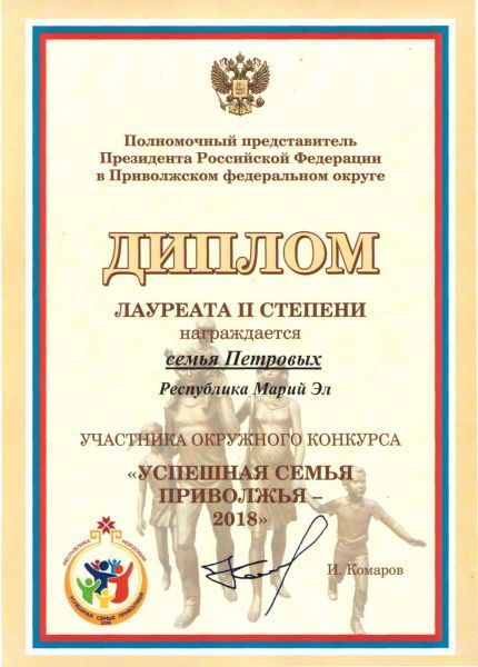 Семья Петровых из Марий Эл в составе представителей четырех поколений заняла II место в конкурсе «Успешная семья Приволжья».
