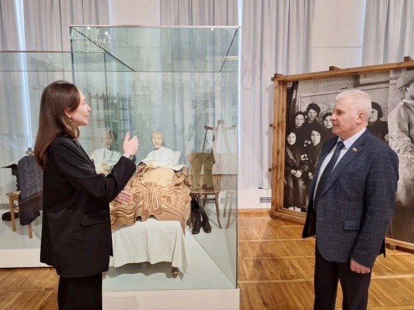 Как рассказали в музее сенатору РФ от Марий Эл Сергею Мартынову, в МАССР уже в начале войны были эвакуированы 33 тысячи человек из прифронтовой зоны, в том числе из блокадного Ленинграда, Выборга, Литвы, Москвы. Более 20 тысяч раненых бойцов и мирных жителей удалось вылечить за все годы войны в 15 эвакогоспиталях, размещенных на территории марийского края. 19 станций предупреждения эпидемий противостояли инфекциям, в каждом районе действовали дезотряды. 27 работников культуры были эвакуированы в республику и влились в местные творческие коллективы.