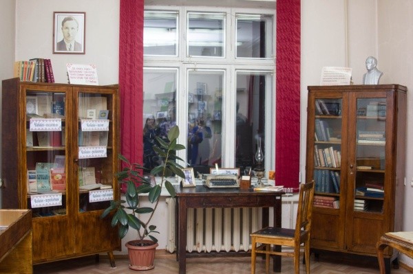 Вообще, поразило отношение библиотекарей к мастеру марийской словесности. Когда директор библиотеки Ирина Щеглова проводила экскурс по родному для себя зданию для сенатора Сергея Мартынова, то, заходя в кабинет, в котором никого не было, она… поздоровалась. Это было необычно. И только потом стало ясно: мы – в кабинете творца. С таким уважением к нему относятся в этом коллективе. Здесь скрупулезно и с любовью подобраны раритеты, связанные с жизнью и деятельностью С.Г.Чавайна.