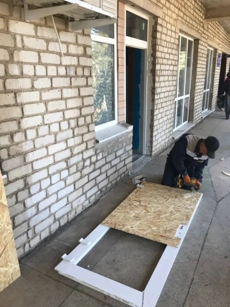 Руководство Куйбышевского округа Запорожской области попросило шефов из Марий Эл помочь местным мастерам временно закрыть тепловой контур здания и замерить оконные и дверные проемы.