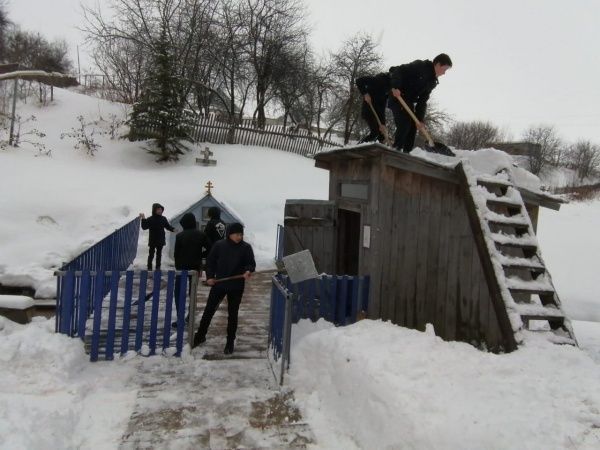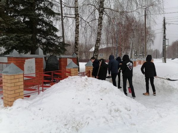 Также ребята почистили площадку у источника иконы Грузинской Божией Матери в Новых Паратах. От снежных осадков они расчистили обелиск, детскую площадку.