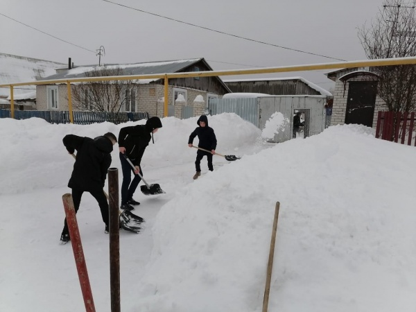 Ученики школы в Новых Паратах в выходные совершили "добрый десант". Они помогли пожилой женщине и расчистили дорожку от снега.