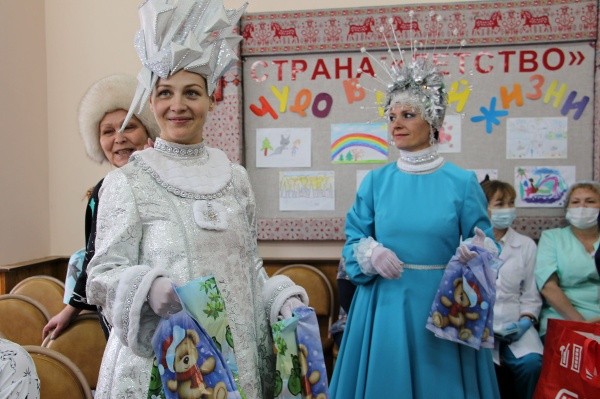 Представители колонии-поселения приехали в медицинское учреждение в назначенное время вместе с новогодними персонажами – Снежной королевой, Зимушкой-зимой и Снежинкой, которые показали детям небольшое костюмированное представление, а затем вручили подарки, пожелав скорейшего и полного выздоровления. Ребята, в свою очередь, тоже читали гостям стихи, пели новогодние песенки и искренне радовались организованному празднику.