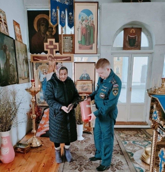 Государственные инспекторы по пожарному надзору проводят осмотры храмов. Особое внимание они уделяют исправности систем автоматической пожарной сигнализации и оповещения людей при пожаре, путям эвакуации и эвакуационным выходам, наличию огнетушителей. Со служителями проводят инструктажи по правилам пожарной безопасности и действиям в случае возникновения пожара.