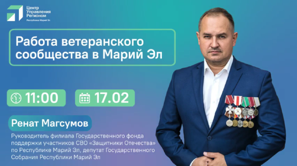 Сегодня, 17 февраля, в 11:00 ЦУР проведет прямой эфир на тему работы ветеранского сообщества в Марий Эл.
