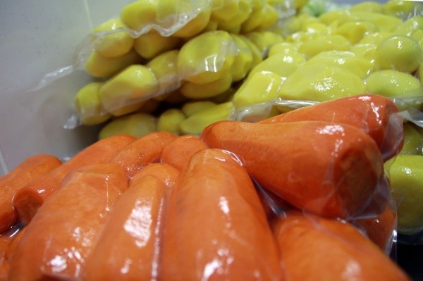 Затем продукт просушивается и фасуется в пакеты. Далее аппарат вакуумной упаковки за полминуты откачивает из пакета весь воздух и герметично его запаивает. Теперь очищенные морковь, лук и картофель могут храниться в холодильнике до двух недель.