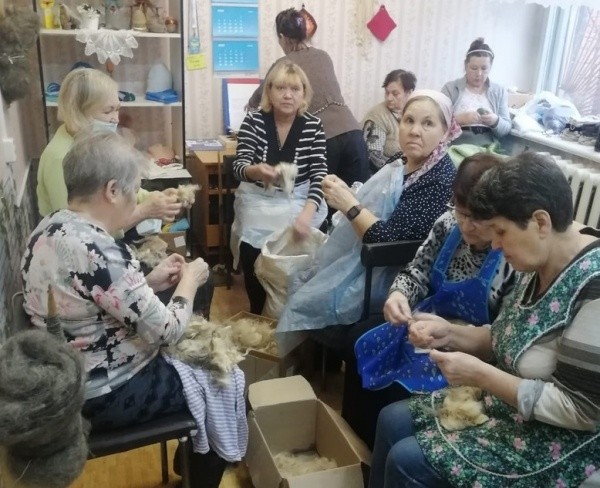 - Сначала я им привезла обычную пряжу (тоже одна бабулька пожертвовала полный мешок). А потом спросила, не хотят ли поработать с шерстью, - вспоминает Зинаида. – Вы знаете, как они обрадовались! Оказалось, все знают и умеют. И моей радости не было предела: тут же привезла «девочкам» и грязную, и чистую шерсть. И дело пошло! Почему девочкам? Потому что они сами просят так себя называть.