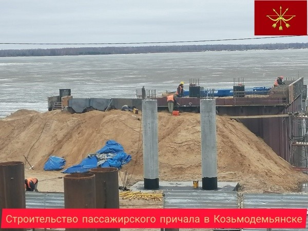 Строительство нового пассажирского причала для речных судов с пешеходным переходом продолжается в Козьмодемьянске.