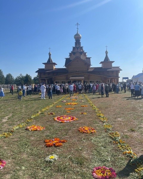 Сколько чудесных моментов радовало душу: дорога к храму, с любовью украшенная цветами прихожанами и флористами из Зеленодольска, душевное пение Архиерейского хора из Казанской епархии под руководством регента Дениса Рогова, праздничные столы, накрытые с помощью волжского кафе «Наше место» (учредитель Татьяна Михайлова) и зеленодольского кафе «Мельница» (учредитель Елена Фадеева). На столах также был плов из «Раифской трапезы» (Максим, Денис) и от Романа Коваля, уху готовили Максим Авдеев и Алексей Фомин.