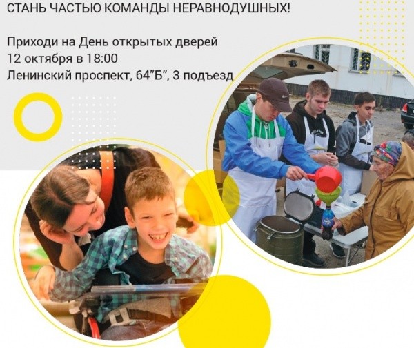 День открытых дверей состоится 12 октября в 18 часов по адресу: Ленинский проспект, 64б, 3 подъезд. Принять участие в добрых делах могут молодые люди в возрасте от 18 до 35 лет.