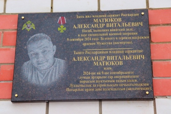 Мемориальная доска в память о младшем сержанте Александре Матюкове, посмертно награжденном орденом Мужества за героизм, проявленный в ходе проведения специальной военной операции, была установлена на фасаде дома в селе Семеновка, в котором он жил.