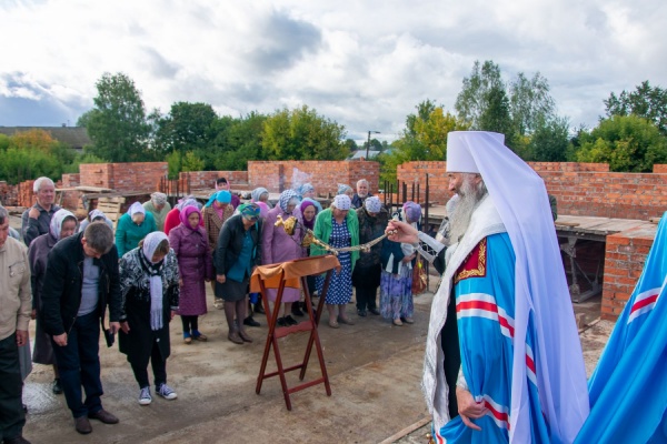 Владыка освятил закладной камень, стены возводимой церкви, установил поклонный крест и вложил закладную грамоту об основании храма.