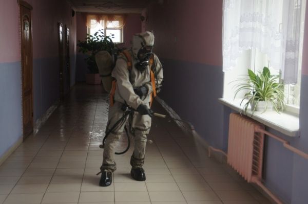 11 апреля силами огнеборцев  йошкар-олинской специализированной пожарно-спасательной части при помощи спецприсопоблений и обеззараживающих средств была проведена дезинфекция нескольких домов интернатов Марий Эл:
