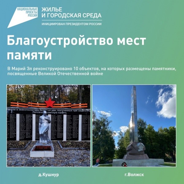 10 памятных мест, посвящённых Великой Отечественной войне, реконструировали в Марий Эл.