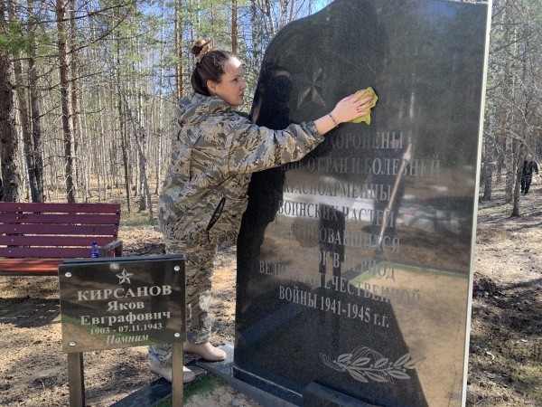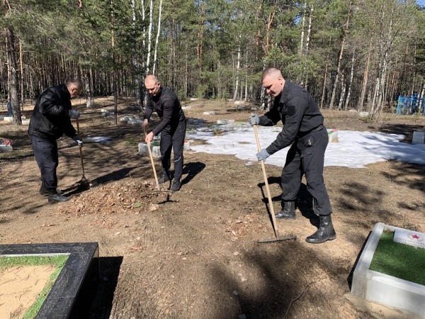 Сотрудники УФССП по Марий Эл накануне Дня Победы привели в порядок захоронение в лесу у поселка Сурок.