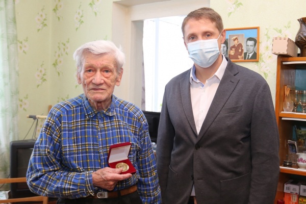 Михаил Швецов поблагодарил юбиляра за бессмертный подвиг на благо Отечества и вручил подарки .