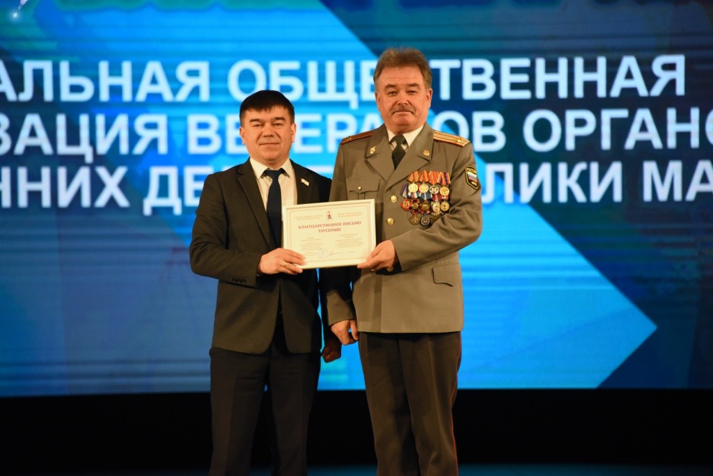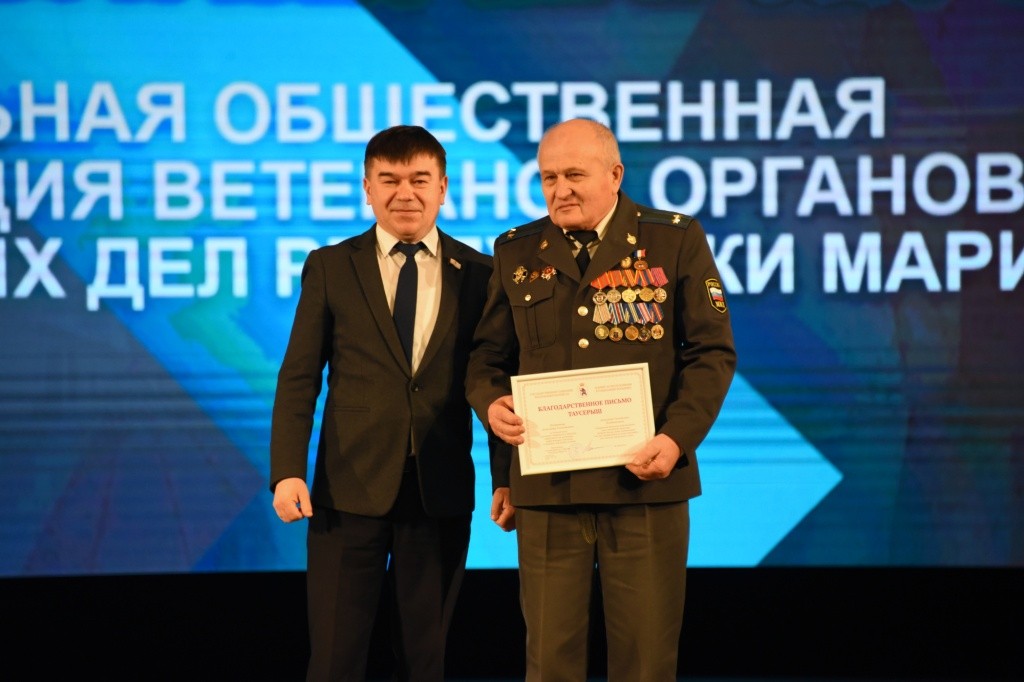 Благодарностью также отмечен председатель организации ветеранов по Йошкар-Оле подполковник милиции в отставке Андрей Красиков. Благодарственные письма вручены руководителю ветеранской организации Козьмодемьянска Валерию Карпову и Юринского района Александру Плотникову.