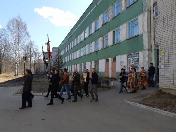 Верующие с иконой «Воскресение Христово», образами Божией Матери и преподобной Марии Египетской, с молебным пением и прошением об избавлении от болезни в крестном ходу прошли по всей территории больничного городка.