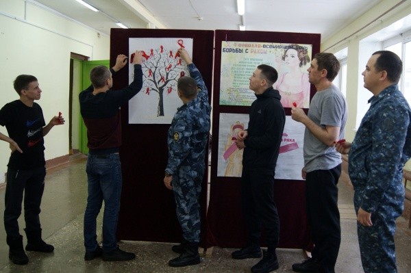 В читальных залах библиотек были оформлены выставки «10 шагов в борьбе против рака», «Мое здоровье», «Что такое рак?» Осужденные подготовили тематические стенгазеты, а в рамках акции «Знание – ответственность – здоровье» по кабельному телевидению учреждений был организован показ социальных роликов «Всемирный день борьбы против рака» и «Потрать 10 минут на здоровье».
