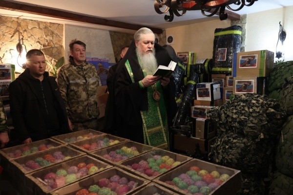 В праздник Входа Господня в Иерусалим епископ Волжский и Сернурский Феофан освятил гуманитарную помощь, в том числе пасхальные куличи, для воинов, находящихся в зоне СВО.