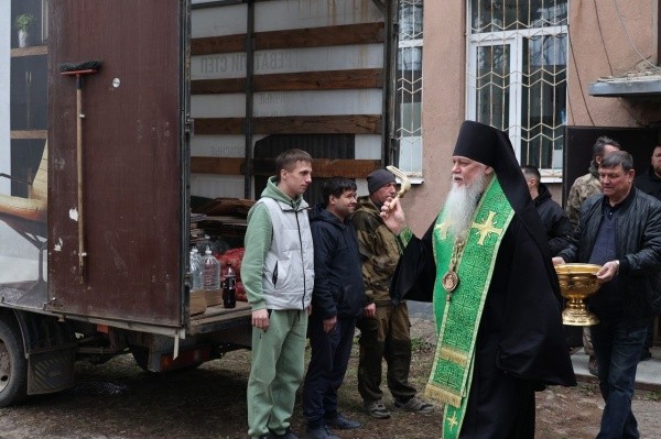 Владыка Феофан поздравил собравшихся с двунадесятым праздником и благословил в дорогу людей, сопровождающих груз, сообщили в пресс-службе епархии.