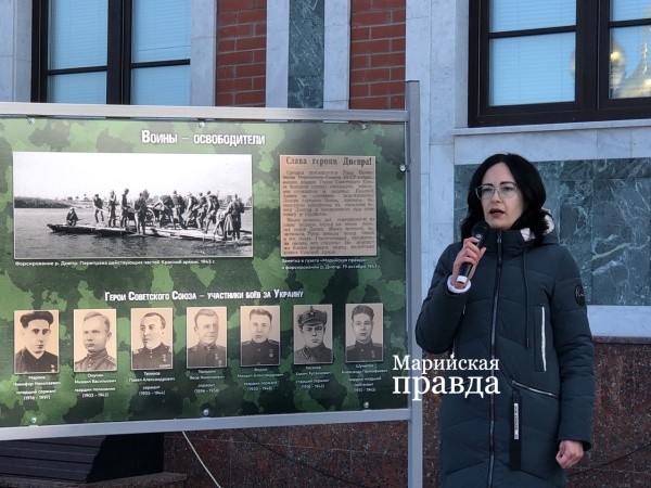 Экспозиция подготовлена сотрудниками Государственного архива республики и экспонируется на уличных стендах. Выставка включает в себя документы и фотографии о вкладе Марийской АССР в освобождение и восстановление территории Украинской ССР в годы Великой Отечественной войны 1941 – 1945 гг. Также экспозиция рассказывает об участии жителей Марий Эл в боевых действиях и гуманитарной помощи в ходе специальной военной операции. Выставка представлена на пяти двухсторонних демонстрационных стендах.