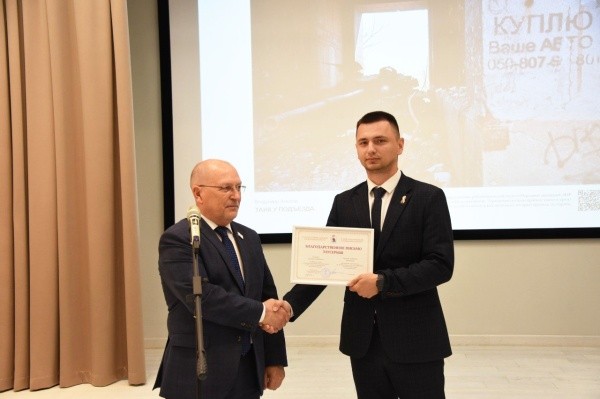 За активное участие в общественной работе и большой личный вклад в военно-патриотическое воспитание граждан глава марийского парламента вручил Благодарственное письмо Государственного Собрания заведующему Музейно-патриотическим центром «Герои Отечества» Евгению Грознову.