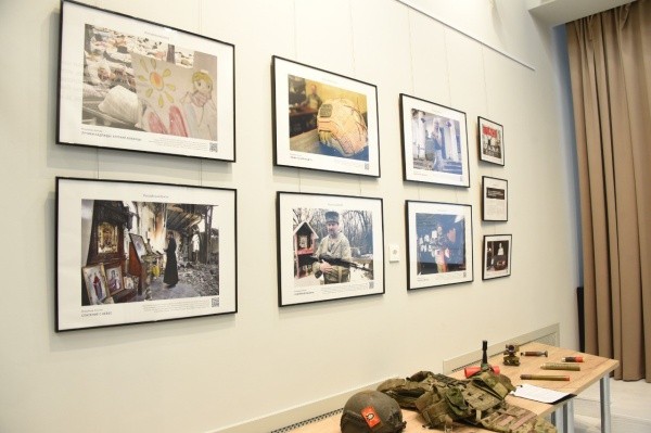 В экспозиции представлены работы военного фотокорреспондента Владимира Аносова. На кадрах – примеры героизма, мужества и самоотверженности солдат, добровольцев и гражданского населения в зоне проведения специальной военной операции.