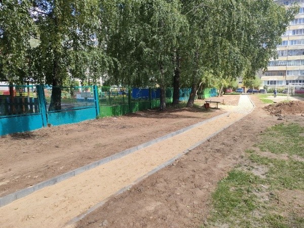 На дворовой территории по улице Строителей и улице Васильева подрядчик обустраивает подъездные пути и пешеходную зону. По планам, работы завершатся в середине этого месяца.