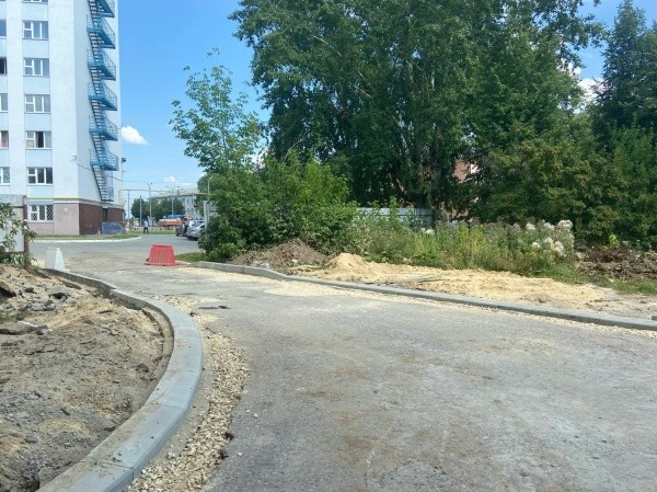 В настоящее время рабочие уже установили бортовой камень, уложили часть выравнивающего и часть верхнего слоёв дорожного покрытия.