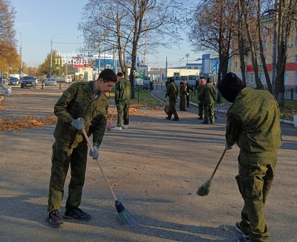 Преподаватель-организатор Никита Кобелев заметил, что трудовой десант начался в стенах РМТ с поднятия российского флага и гимна РФ, настроение сразу пошло вверх и потому поработали дружно.