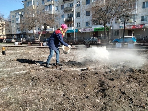 В настоящее время специалисты МУП «Город» вносят удобрения и перекапывают почву на бульваре Чавайна.