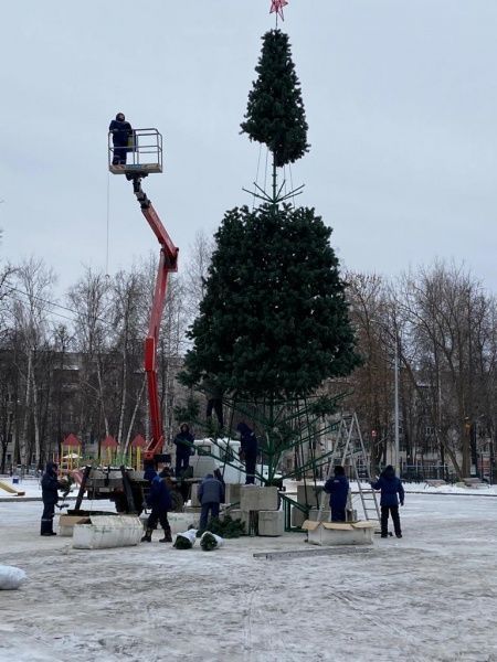 Сегодня новогодняя ёлка появилась в Парке Победы в Йошкар-Оле. На установку 15-метровой конструкции ушло 2 дня.