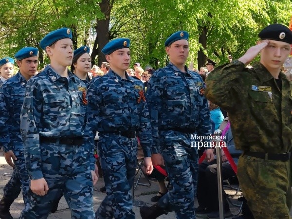 Под марш «Прощание славянки» в исполнении духового оркестра строем прошлись школьники и студенты города. Парад юнармейцев – также традиционный элемент Дня Победы в Волжске. На груди некоторых молодых волжан уже блистали награды. Так, Данил Чуешов из школы №4 награжден медалью юнармейской доблести в составе военно-патротического клуба Зеленодольска.