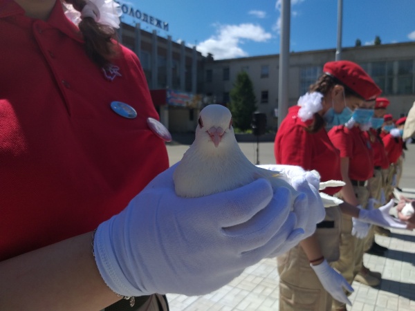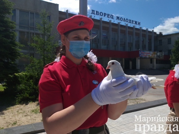 - Таким образом мы присоединяемся к большой акции «Звон Победы», которая сегодня проводится в России, - отметила и.о. директора Дворца молодежи Республики Марий Эл Оксана Лунева. – Как и по всей стране, открыл акцию сигнал гудка, прозвучавший на площадке перед зданием дворца. Затем юнармейцы выпустили в небо белых голубей.