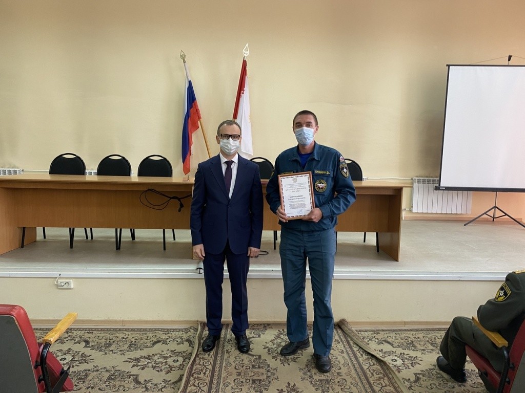 Врио начальника регионального ГУ МЧС России полковник внутренней службы Алексей Сабадырев вручил сотрудникам ведомства медали, нагрудные знаки, почетные грамоты. Также были зачитаны приказы, подписанные Министром МЧС России, о присвоении очередных специальных званий.